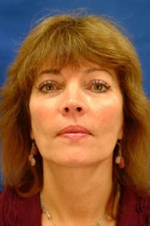 This 50 year old female had brow ptosis, lower lid bags and an A-shaped face due to sagging of muscles of the cheeks and neck. Note in the after brow lift, lower lid blepharoplasty and Dr. Bunkis’ A to V Natural Facelift procedure that her face was restored to a youthful V-shape. The photographs on the right show the patient in her 20’s (high brows, no lower lid bags, V-shaped face) and in her sixties, more than 10 years after her lift – a similar facial shape to her mid 20’s (actual patient of Dr. Bunkis, your results may vary).
